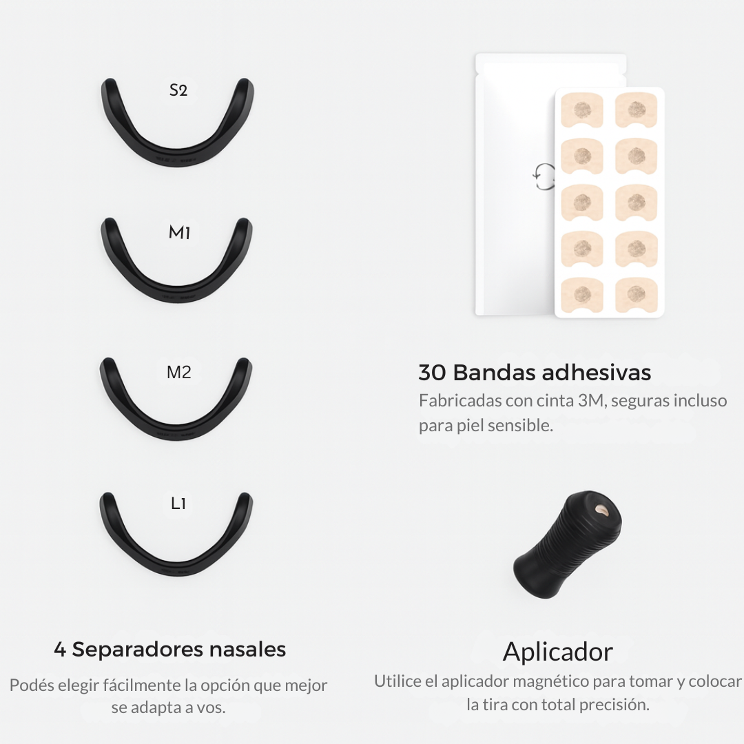 En movimiento, el aumento de flujo de aire ayuda a sostener el ritmo y a recuperarte mejor después del ejercicio. De noche, al mantener la nariz despejada, favorece una respiración tranquila que puede reducir ronquidos y mejorar la calidad del descanso. Y en el día a día—oficina, estudio, viajes—es discreto y cómodo, ideal para mantenerte enfocado sin sprays ni pastillas.